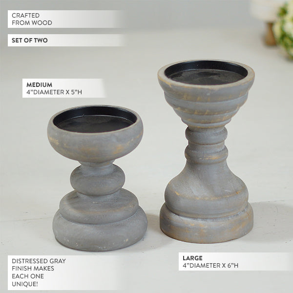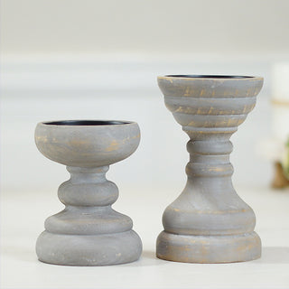 Introducing our Gray Distressed Wood Candle Holders, a set of two designed to infuse your home with rustic charm and warmth. Here's why they're a must-have: