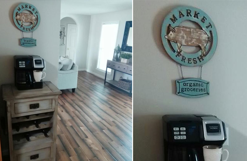 This beautiful piece was designed after the original signs found at local markets in the early 1900s. The designer paid great attention to the details of this piece and it really shows! We LOVE the embossed lettering and of course the beautifully antiqued blue finish! This sign has all the vintage inspired charm we could ask for! Hang it in the kitchen breakfast nook living room dining room porch...pretty much any space can benefit from this piece!