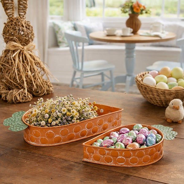 Pair these adorable carrot trays with our Metal Carrot Wall Decor for a coordinated springtime look!