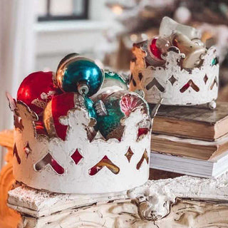 This set of metal crown decor is perfect to add that romantic, warm touch to any of your European vintage inspired vignettes. Display these on your dresser, mantel, desk, or atop a few books on your coffee table! Simply add small potted plants, holiday ornaments or even candles inside and you have a BEAUTIFUL display! Hmmm, maybe even on your tree this year!? This set of two metal crown decor will make a beautiful wedding or little princess photography accessory! WOW, we love steals that have so many possibilities!