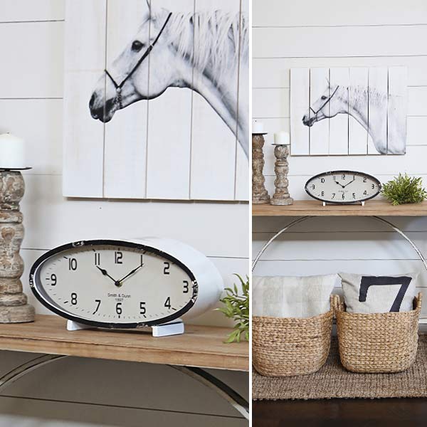 The perfect amount of distressing on this vintage beauty really brings it to life and creates such charm and character! OH! And the SIZE of this table clock is AMAZING! It will definitely be the statement maker on any nightstand or accent table! We can just picture it now among your other Farmhouse finds... sitting on top of dated books next to your favorite chippy photo frames or even paired with the perfect distressed lamp! This clock is sure to add a touch of vintage anywhere you put it!