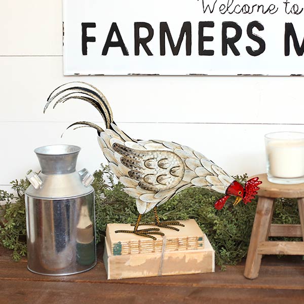 Now if you’ve been with us for some time you know we ADORE all things rustic and all things farm animal which is why when we laid eyes on this BEAUTY we fell in LOVE! This steal makes us want to burst into song we’re soooo overjoyed!! Give us an E-I-E-I OHHHHH won’t ya?! And wherever you put him this rooster will surely steal the show and a few hearts while he’s at it! <3