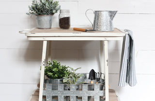 This rolling cart is super functional and has a charming farmhouse appeal! It’s on wheels, so you can easily motor it around to wherever your latest project is. Whether you are gathering supplies for a super cool craft project or just doing laundry, this cart will be your new best friend!