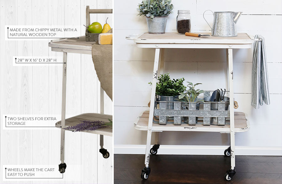 We're in LOVE with this AMAZING vintage-inspired rolling cart! It’s 2 levels of AWESOME and gives you so much space for just about anything... and it’s BIG!!