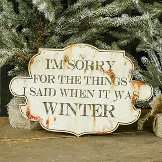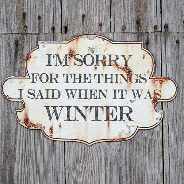 Bring some humor to your winter decor with this Distressed Metal Winter Sign! Its witty phrase and rustic finish are perfect for adding a playful touch to your space. Whether displayed in your entryway or leaned against the mantle, it’s sure to get a laugh from guests.