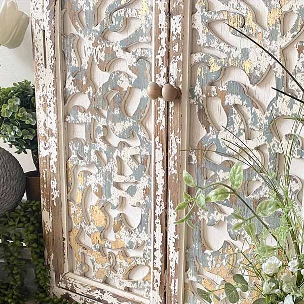 The perfectly distressed wood and ornate carving designs are simply GORGEOUS! Hang it or lean it anywhere you need some extra shabby chic charm. And we know… that’s EVERYWHERE, LOL! Place it above your mantel and it will be a show stopper! Or place it behind a boxwood wreath and add some dimension. We just know this piece will be sure to make a statement wherever you showcase it!