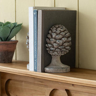 With their unique flair and elegance, our set of two Distressed Pinecone Bookends are dripping with character and timeless charm. The exquisite detailing of these stunning bookends will be sure to highlight the look of your vintage, traditional, or farmhouse-style home.