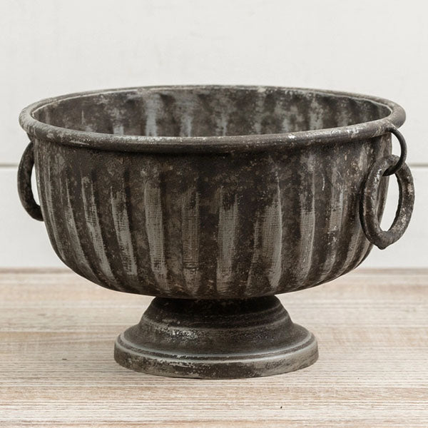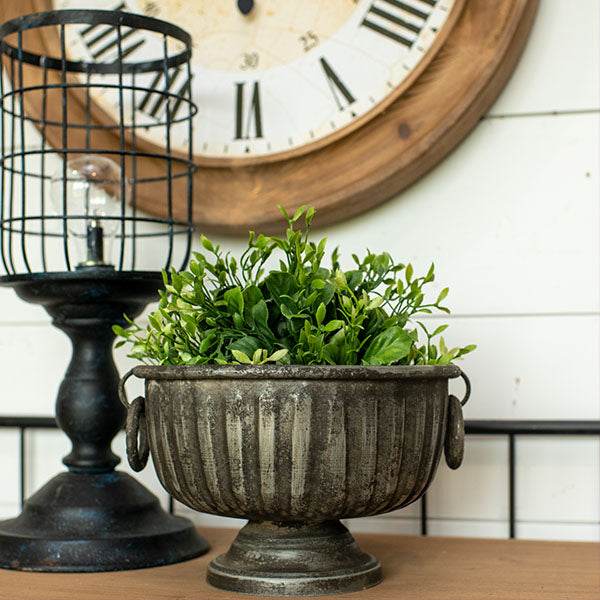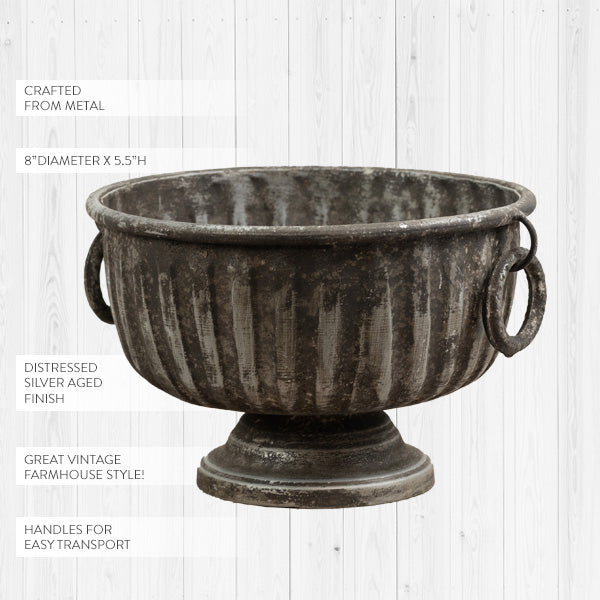 Inspired by traditional farmhouse pieces, this beautifully aged Distressed Silver Metal Compote Bowl is not only perfect for displaying your fresh or faux florals, but also makes the most breathtaking centerpiece at any family gathering. Simply add faux flowers and greenery and you have yourself a timeless look. We can picture it as your centerpiece on your table, resting on your fireplace mantle, tucked in the corner next to your reading nook chair, or even in the entryway on your foyer table. We didn't hesitate for a second when we came across these. We just love the LARGE size, texture, shape, and vintage yet timeless design!