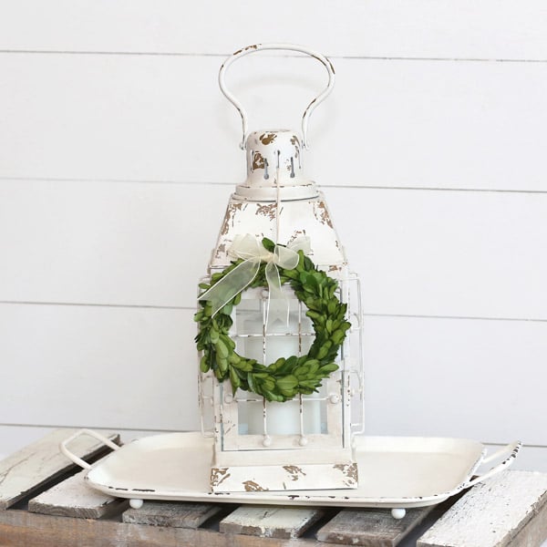 This lantern is dripping with rustic charm! The chippy white paint adds character and tells a story of this piece. We love lanterns in general but the worn paint gives it some extra flare!! This lantern doesn't have to be used for candles only... You can really get your creative juices flowing with this piece. Add some succulents or moss inside maybe some flowers or seashells. Whatever you do we know it will look GORGEOUS!