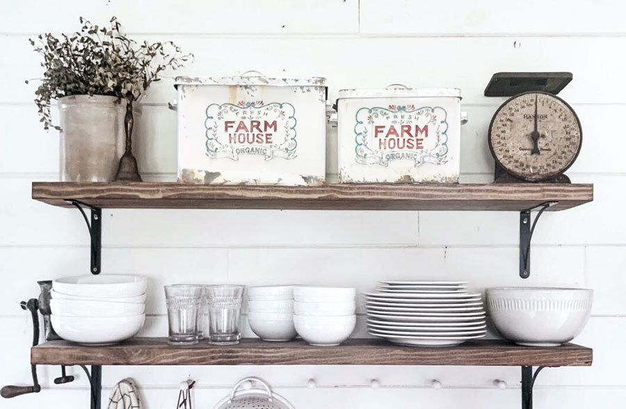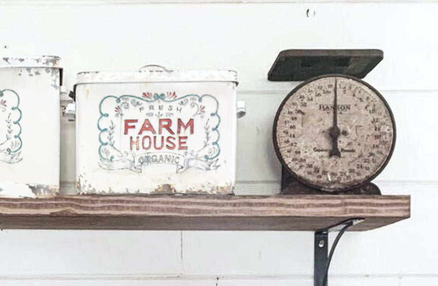 We were all aflutter when we saw this PERFECT farmhouse steal! These pieces ooze vintage farmhouse charm! When we saw these distressed metal farmhouse storage bins we couldn’t keep away! They are so precious and even have “Fresh Farm House” printed on the front with amazing detail!