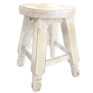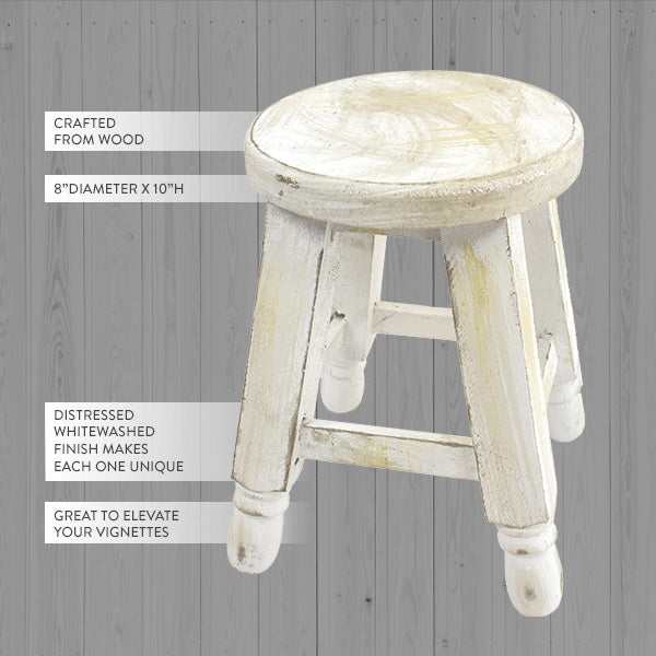 This Distressed White Finish Wood Riser Stool is a delightful addition that is sure to enhance the ambiance of any room. Don't miss the chance to elevate your decor with this charming piece. Order yours today and experience the timeless appeal it brings to your space!