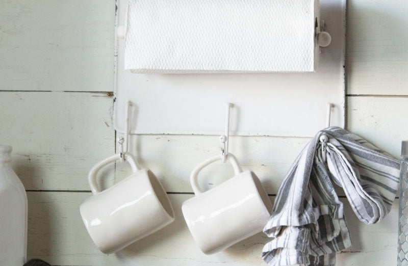 Now we might be calling this beauty a "kitchen rack".... but there's so much more to it than that!! The vintage hooks at the bottom can hold anything from your hand towels to your coffee mugs and everything in between! Towels in your bathroom jewelry in your closet or even your handbags! Get creative! ;) This beauty doesn't have to stay in the kitchen!