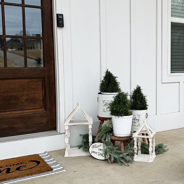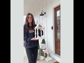 The LOVEFEST continues with these lanterns as they are both super functional AND super beautiful! They're not just homes for candles; they are a statement piece that brings all the cottagecore charm into your home. The beautifully turned wooden base and distressed white finish give them a timeless, elegant look that you'll want to display year-round. Easily add some LED candles to create a cozy glow on your mantel, as a stunning centerpiece on your dining table, or to add a touch of warmth to your entryway!