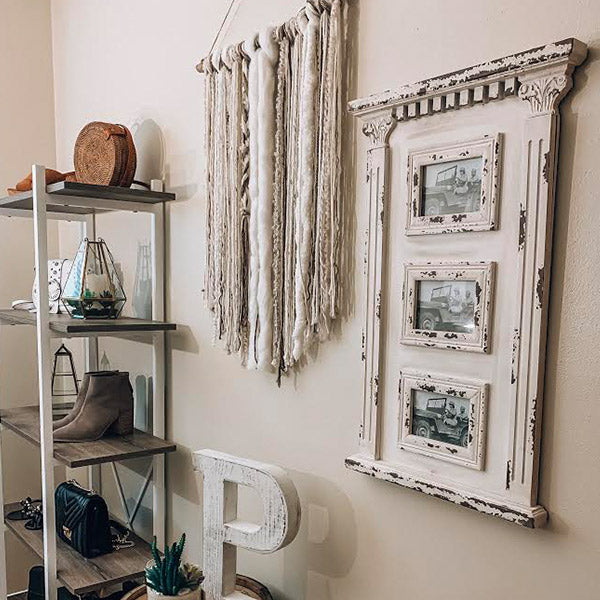 How could you say no to a piece with such charm and elegance?! Crafted from beautifully distressed wood with a chippy white finish; this GORGEOUS wall-mounted frame will showcase your photos in the most stunning way!! Hang it in your entryway living room bedroom office den; with soooo much character it can literally go ANYWHERE!! Don’t you just LOVE it??? Of course you do!!!!