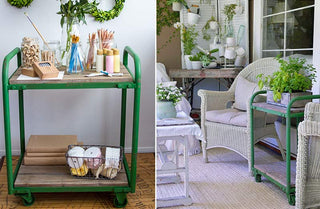 It’s a summer drink station an end table a plant stand an extra mud room counter a spot to drop your purse & and keys or stash your yarn and keep it close while you work. We could go on and on and on! And did we mention the wheels are SUPER functional and great for outdoor gatherings! Yeah it’s just that cool...