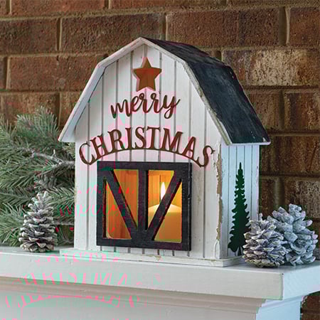 Spread holiday cheer and celebrate a classic country Christmas with our Barn Lantern this season. Add a candle inside and display it on your mantel, bookshelf or any accent table and add the perfect finishing glow to your Christmas decor.