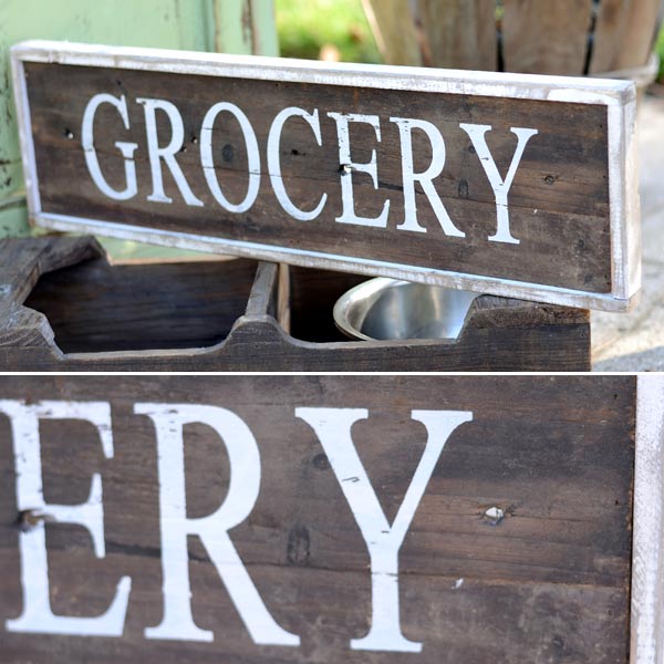 Every Kitchen must have! Make a tasty statement in your kitchen with this rustic wood grocery sign. The word ‘grocery’ is painted in block lettering and generoulsy distressed along the edges to finish off the beautiful design.