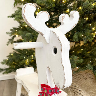 The elegant simplicity of the design, complete with carved antlers and that classic red plaid bow, captures everything we love about rustic Christmas style without trying too hard.