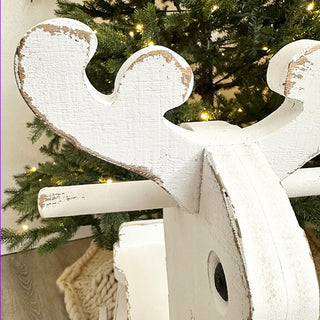 Here's what makes this piece special—it's not just another holiday decoration that lives in a box eleven months of the year. The distressed white finish feels like a vintage find from a European flea market, weathered and loved, with a character that only handcrafted pieces possess. Each groove and imperfection in the wood tells its own story, ensuring no two are exactly alike.