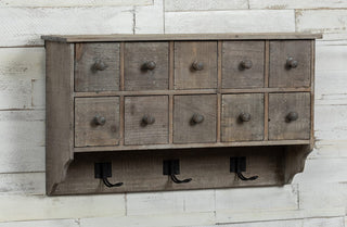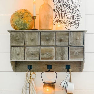 Hang this in your entryway to hang your coats and let the drawers collect your keys, dog leashes, wallets, and all your other daily needs. We can picture your towels hanging from the hooks in your bathroom and the cubbies storing your extra soaps, Q-tips, and cotton balls! Place this in your kids’ room to collect their crafts and toys or hang this in your office for all your work needs. This piece is BEAUTIFUL and SUPER functional!