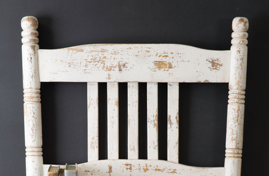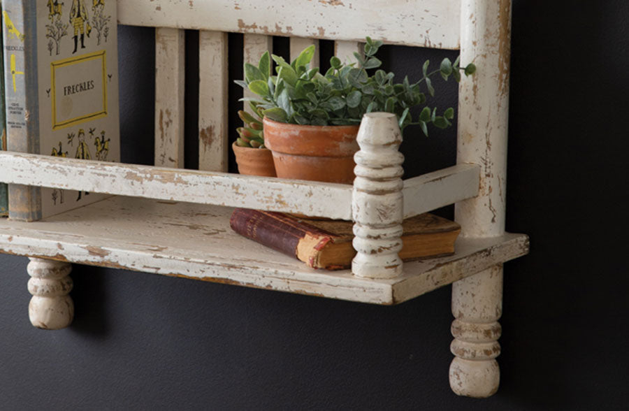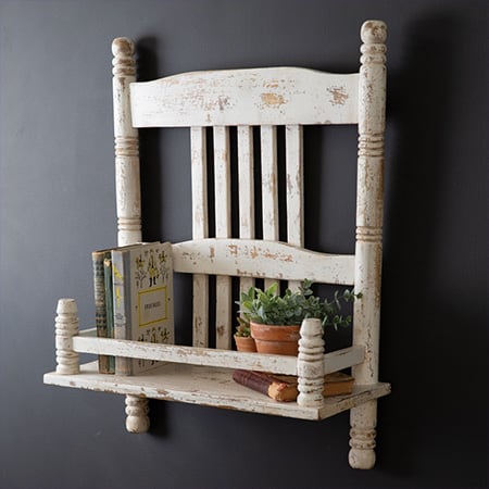 Around here we believe that your home should be filled with elements of your personality and pieces that truly speak from your heart. This Distressed Wooden Chair Shelf is just dripping with character as unique as yours!