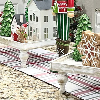 Take your decorative vignette to new heights with our Distressed Wooden Footed Riser Trays, Set of 2. Featuring a classic design in a whitewashed, distressed finish and decorative turned legs, these wooden risers will fill your home with vintage-inspired charm while adding extra dimension as well.