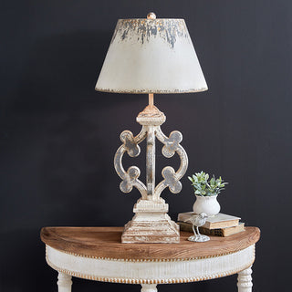 Rustic Charm: Featuring a distressed wooden base with intricate detailing, this table lamp exudes rustic charm and character. The weathered finish adds a sense of history and authenticity, making it the perfect complement to farmhouse-style interiors.