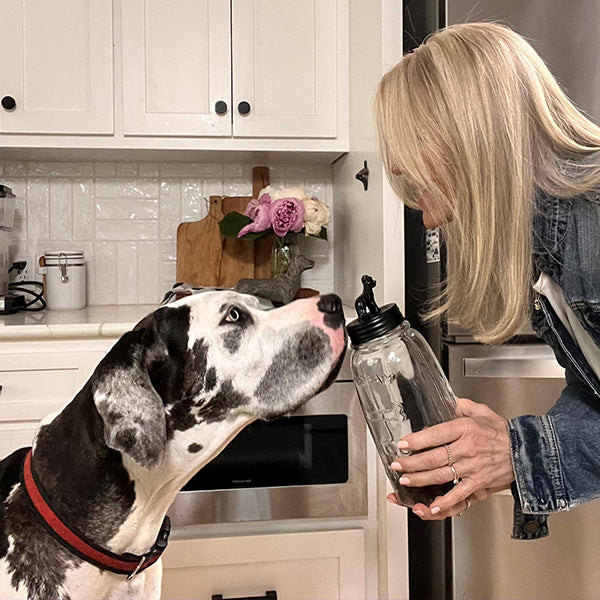 Keep your pup’s favorite snacks fresh and stylishly stored with this charming Mason’s Dog Treat Embossed Glass Jar. Designed with vintage appeal and a hint of whimsy, this jar features embossed lettering and a classic bone motif, making it a functional and decorative accent for any dog-loving home. The crowning detail? A metal screw-top lid complete with a standing dog figurine that adds just the right touch of farmhouse flair.