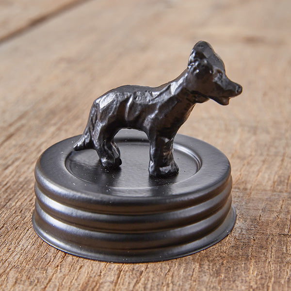 Decorative Metal Lid: Black metal lid is adorned with a proud pup figurine—perfect for pet lovers who appreciate thoughtful details.