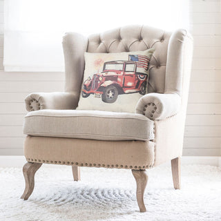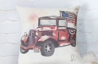 Everyone welcome back the beloved Oliver for his Patriotic debut!! This delightful truck is here to celebrate home every season with an all American look!! You’re going to love how this edition to our pillow collection will look in your home this Summer season! With SOOO many patriotic holidays coming up (Memorial Day 4th of July Labor Day) Oliver will be the perfect addition to any space! The bed of the truck features an American Flag to show our pride for our beautiful country! And the back features a quote and date: "Amazing Grace How Sweet The Sound - Patriotic 2018"