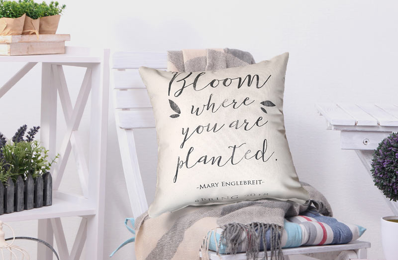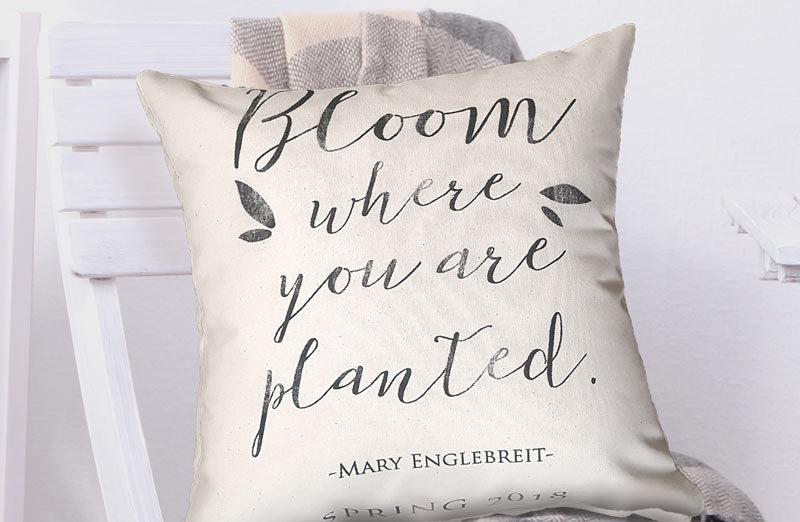 Quote Reads: "Bloom where you are planted - Mary Englebreit - Spring 2018"