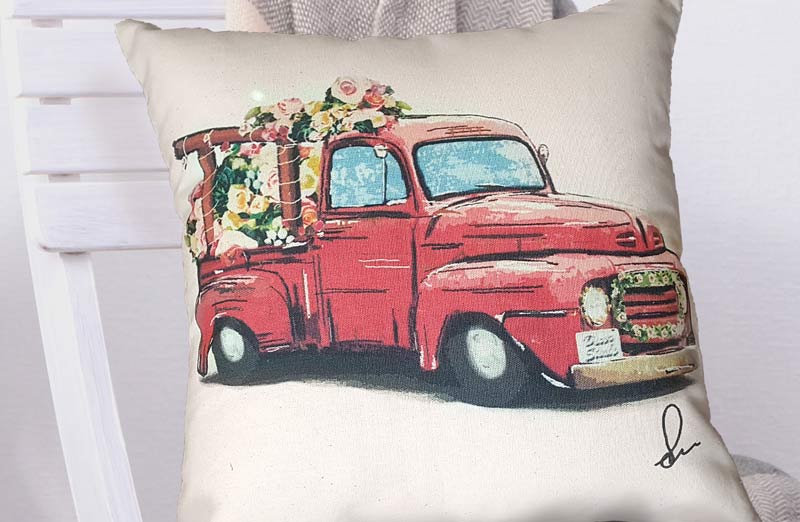 Everyone welcome back OLIVER! The original Decor Steals Red Truck is here to celebrate the spring season filled with bright flowers!! You’re going to love how this edition of our pillow collection will look in your home this Spring season! It features a truck bed filled with beautiful flowers and a sweet springtime quote on the back!