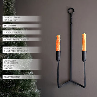 Perfect for bringing warmth and character to your wall decor, the Forged Iron Double Taper Wall Sconce blend old-world charm with modern functionality. Whether flanking a mirror, framing an entryway, or enhancing a gallery wall, they’re the perfect rustic accent to complete your look.