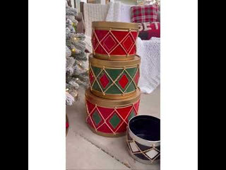 Here's the deal: you get FOUR drums, not two like most sets. Four coordinating colors—rich red, forest green, black and white, and classic solid red with gold accents. 🥁✨ The metallic trim catches the light just right, and that decorative rope detail? Chef's kiss.