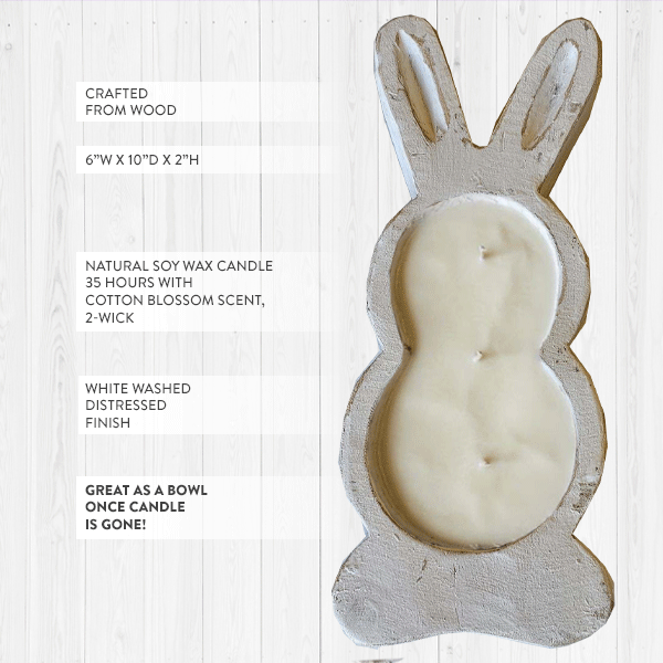 Handmade Elegance: Each White Washed Bunny Bowl Easter Candle is meticulously crafted by hand, showcasing the artistry and attention to detail that sets it apart.