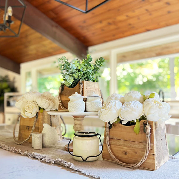 Use each of these 3 planters as an outdoor or indoor herb garden box. Add faux florals or real plants (just add a liner for protection) to create the garden of your dreams! Hang them on the wall or on hooks in your entryway! Place them on a flat surface on your window sill or create a charming centerpiece... These Eco Friendly Wood Planters with Straps will surely add that touch of needed serenity to your home!
