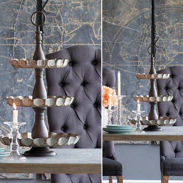 The unique design on this three-tiered Stand is one that we just couldn't live without... You can't get more Farmhouse than this! The scalloped edging is a show stopper and will look great among your other vintage finds. Use this stand for its functionality in the kitchen by displaying all of your herbs and spices teacups and saucers or fresh fruits and veggies... the options are endless! This is the perfect piece to use on special occasions for an adorable Farmhouse inspired cupcake display!
