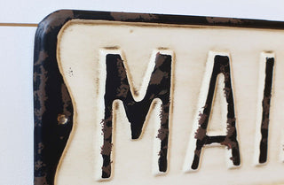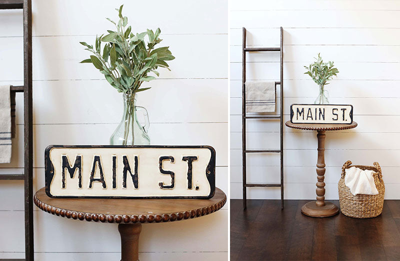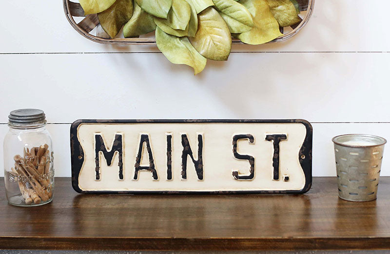 Our HUGE vintage inspired Main Street Sign will be a GREAT addition to your home office storefront boutique café wherever! We love the idea of placing this in the foyer or entryway to add a bit of American heritage to your space. Picture it above your entryway table or leaning against a wall in the living room. This metal sign could be just rustic touch you need in your farmhouse inspired home to give it the charm it's been missing.