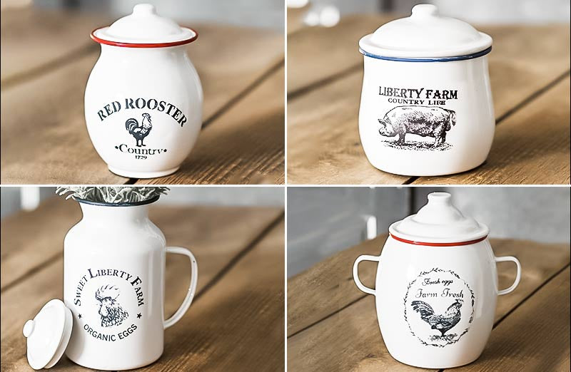 These enamel farmhouse-inspired canisters have it ALL! Your FAVE white chippy enamel SUPER cute design and an even cuter friend that will catch everyone’s eye! How PERRRRFECT!!! AND you know what makes this good steal a GREAT steal??? You get FOUR different canisters!!!! YES you read correctly…. FOUR!!!!!