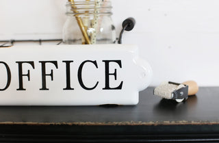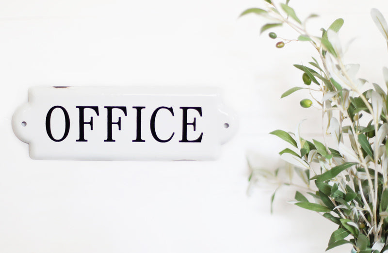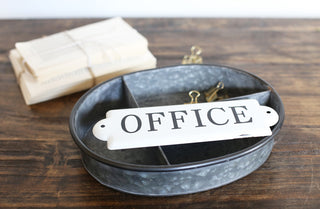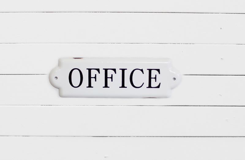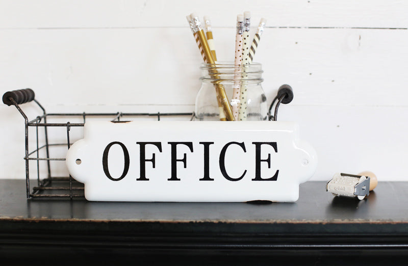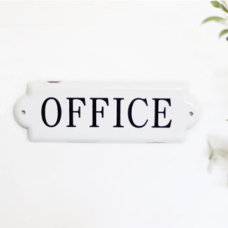 This sign is so great because it's a stylish way to make finding the office easy for guest! Made of enameled metal it's the perfect add-on to your shabby chic and farmhouse style. The great shape of this metal sign and the crisp enamel will blend perfectly with any vintage style!