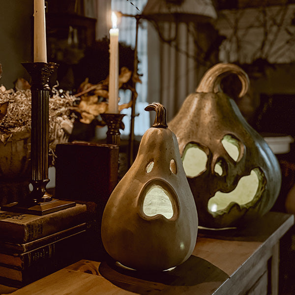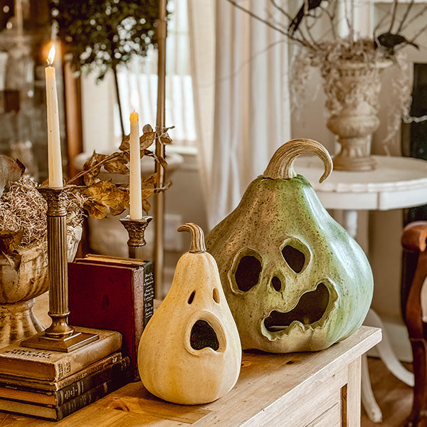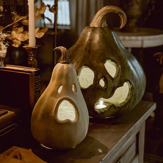 Medium: 7"W x 7"D x 9.5-11.5"H - Packed: One Set Per Package (you will receive two Jack-o-lanterns)