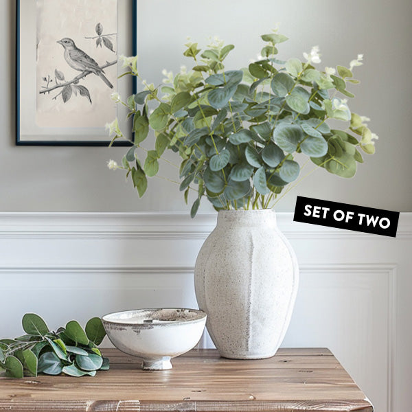 Set of Two: With two faux eucalyptus plants included, you have the flexibility to create cohesive arrangements or spread the greenery throughout your home. Mix and match with other decor pieces for a personalized touch.