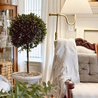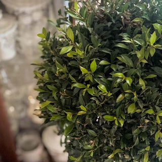 Eugenia, also known as Dwarf Brush Cherry, is a charming evergreen that is hardy in zones 9-11. New growth emerges in dramatic bronzed hues accompanied by intermittent white blooms that eventually mature into edible purple fruits. Eugenia's compact and orderly growth pattern make it an easy to prune, low maintenance topiary. Great for use as a tidy hedge when planted directly into the garden, or for accenting focal points like walkways and entryways when planted in containers. Topiaries are a low-lift and cost-effective way to instantly boost curb appeal and further adorn your home.