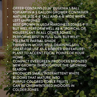• Offer contains (1) 36" Eugenia 1-Ball Topiary in a 3 gallon grower container
