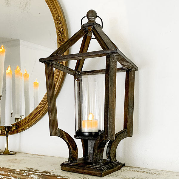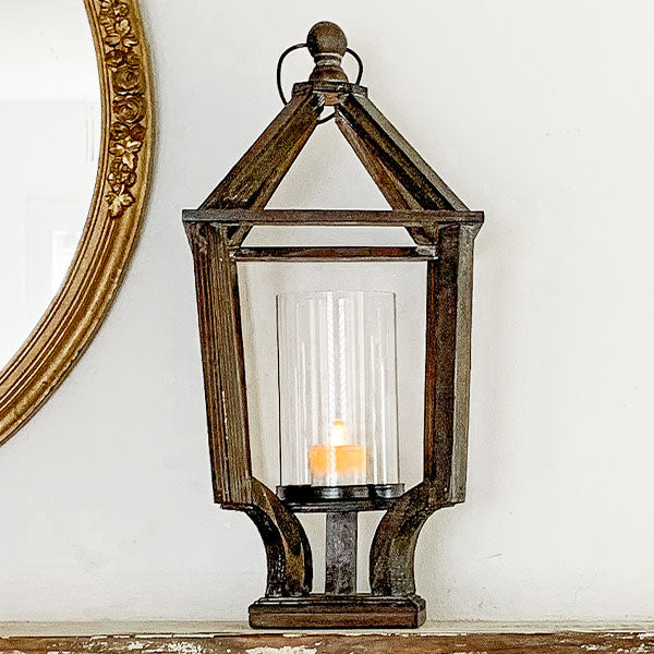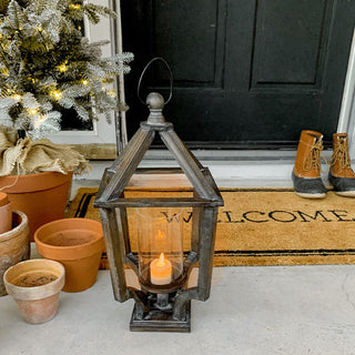 We are looooving everything about this European Street Lamp Candle Lantern! This will take your space to a whole new level and will effortlessly fit into your farmhouse home. Just add a pillar candle to this piece to brighten up your space. This piece will be the PERFECT addition to your mantel or side table in your living room. We can see this styled on your dining room table as part of a centerpiece. It will surely give off a romantic glow for date night dinners! Place this on your porch or patio to enhance your décor look! Add this beauty to your entryway table to greet your guests. This lantern is STUNNING!
