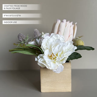 Who says effortless can’t be stunning? Meet your no-fuss, always-flawless decor hero: the Everlasting Floral Centerpiece in a whitewashed wooden planter. This lush, lifelike arrangement brings the beauty of a fresh-cut bouquet with absolutely zero upkeep—because you deserve beautiful things that don’t require watering reminders.