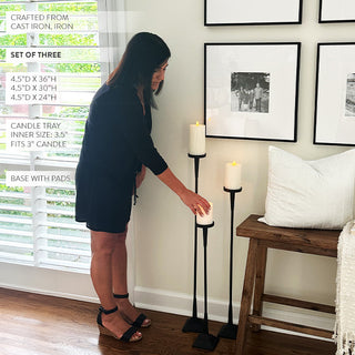 Elevate your home decor with the sophistication and elegance of our Extra Tall Cast Iron Candle Holders, Set of 3. These statement pieces sell out quickly—don't wait to secure yours!