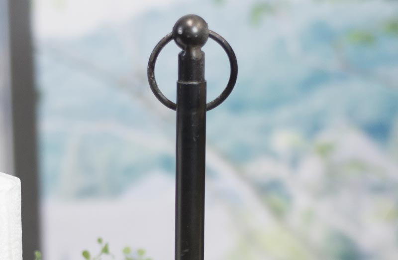 -Beautifully crafted of metal with a slight distressed black paint finish