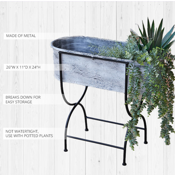 This beautifully crafted Farmhouse Distressed Metal Bin on Stand, with its vintage elegance, looks like it has a story to tell—perhaps it once sat in an old farmhouse, filled with freshly picked apples or cozy wool blankets. Now, it’s found its way to your home, ready to add its unique character to your space. Whether you use it for storing your favorite throw blankets, keeping your children’s toys tidy, or even as a charming planter for your indoor garden, this bin is as functional as it is fashionable.