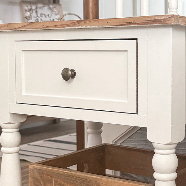 Add a dose of rustic charm and a whole lot of excitement to your space with our Reclaimed Wood Storage End Table with Drawer—now at a NEW low price… 26% OFF! This beauty is the kind of piece that makes you stop in your tracks. Warm reclaimed wood, a classic two-tone farmhouse finish, and storage that actually makes life easier? Yes, please!
